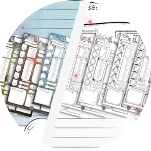To provide you with the highest level of immersion and help you dive deeper into the chosen role, each of our Character Sheets has been created for a specific class. You can feel the uniqness of the designs in the choice of color, background graphic, tailored fields and class-specific ornaments and emblems. Ready for an adventure?