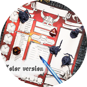 The Character Sheets enhance D&D gameplay with a clear, immersive design and a user-friendly, fillable PDF format. Easily record and manage your character’s details directly on your computer or print them in A4 format. To save on ink, opt for the black & white version. After purchase, you'll receive the file via email.