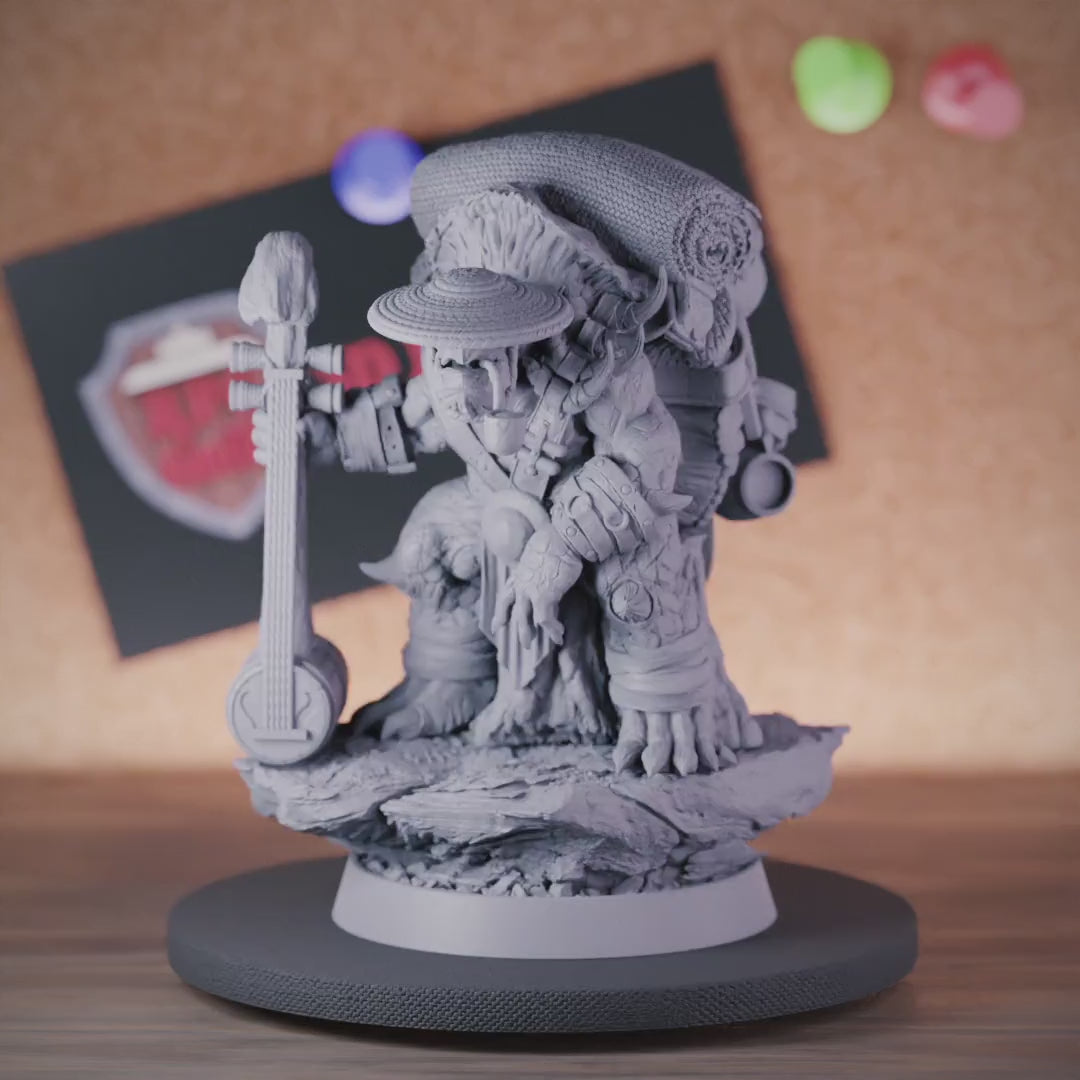 Bring the tranquil wisdom of the Tortle Bard to your tabletop with this exquisitely detailed miniature. Unleash the Tortle Bard's harmonious power and let his soothing melodies turn the tides of battle in your favor. This miniature is a must-have for any Dungeons and Dragons collector or painter seeking to infuse their tabletop with the spirit of peace and wisdom.