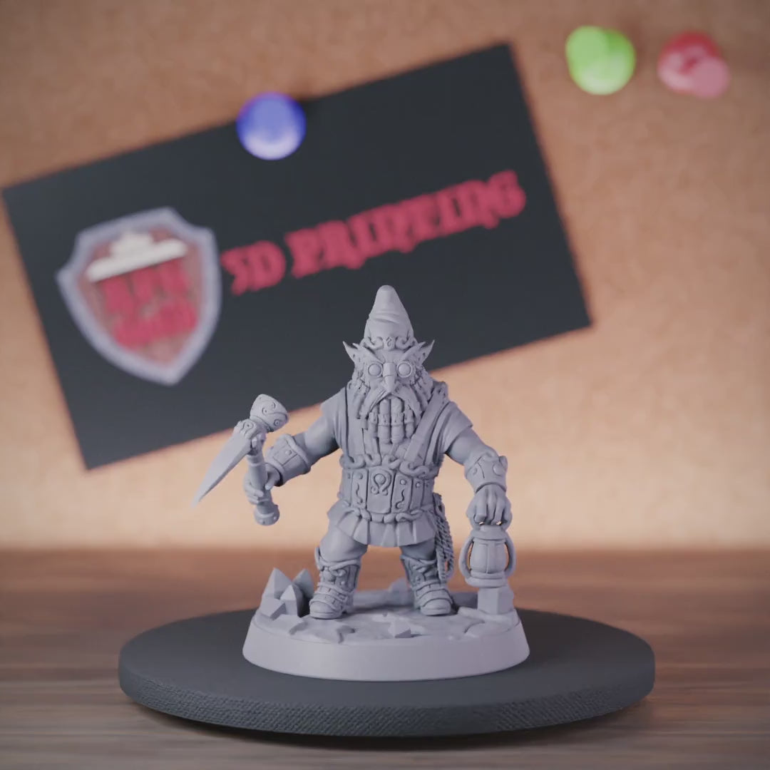 This Gnome Miner is a master of the underground, with a keen eye for valuable stones and ores. Hardworking and hardy, they can toil for hours to turn a profit. Whether you're looking to add depth to your party or bring a fan-favorite character to life, this mini is a must-have for any serious DnD collector.