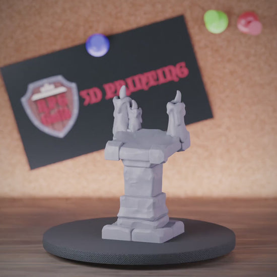 Bring this ominous, candle-lit stone Altar into your game to set the stage for a chilling confrontation with a sinister cult. Its haunting presence will have your players on the edge of their seats as they face the dark rituals that unfold before them. Elevate your campaign's atmosphere and create an immersive experience your players won't soon forget.