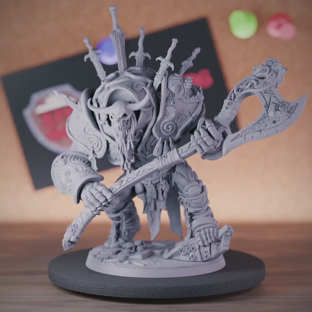 This towering, axe-wielding Undead Colossus is a challenge like no other. Its unstoppable onslaught and decapitating strikes will push your players to their limits, forcing them to dig deep and tap into their greatest strengths and strategies to overcome this fearsome foe. Designed to captivate and terrorize, this mini is a must-have for any DnD enthusiast seeking to elevate their campaign with a truly unforgettable, game-changing encounter.