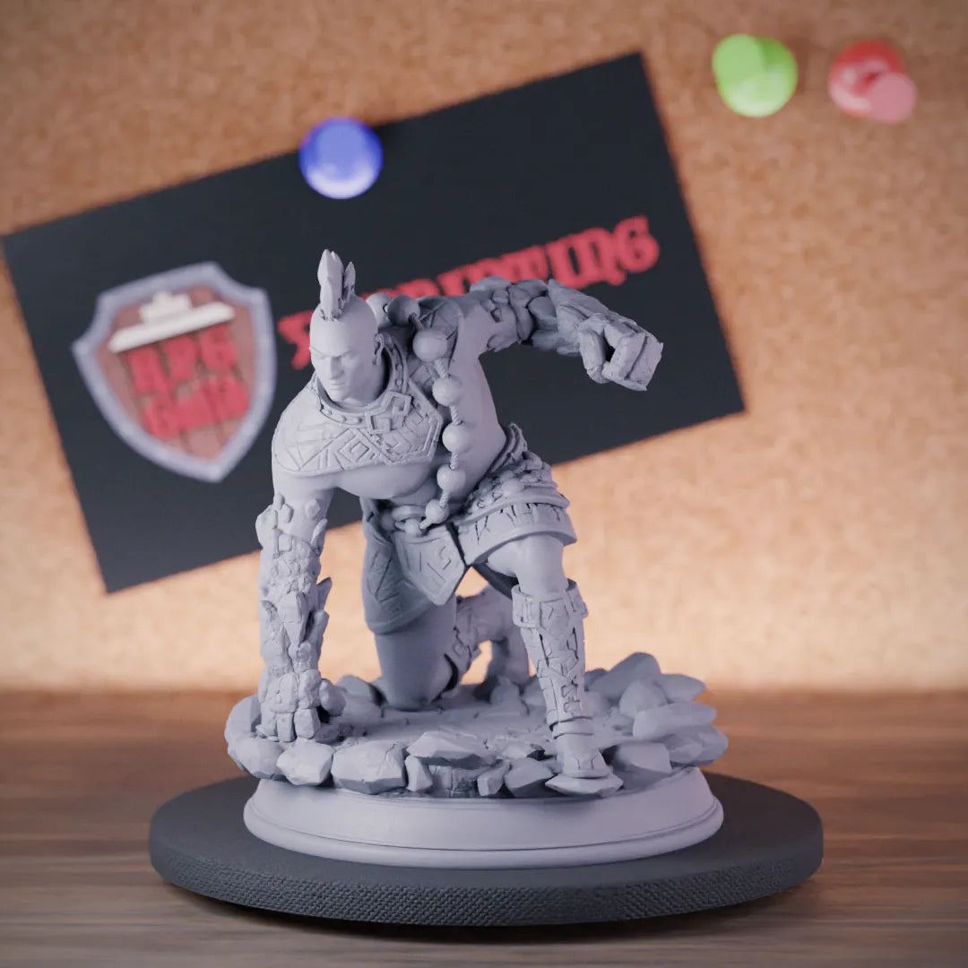 Immerse yourself in the world of DnD with the Earth Genasi Monk miniature, which embodies the strength and grace of its character. With a dynamic pose showcasing martial arts mastery, this miniature highlights the Earth Genasi Monk's unique skills. The pose is not only visually striking, but also tells a story of an unwavering connection to the elemental earth. Each sculpted detail of it, from the rocky textures to the flowing movement of its stance, reflects the powerful synergy between earth and martial prowess. As you place this figure on your tabletop, you’ll appreciate how its commanding presence elevates your DnD campaigns, bringing a new level of depth and excitement to your adventures. The Earth Genasi monk is a perfect addition for any monk player character, offering a tangible representation of your character's ability to channel the raw power of the earth into their martial arts skills. Every feature of this miniature has been designed with you, the passionate gamer and collector, in mind. With detailed features that highlight its power and a durable design, this Earth Genasi Monk miniature is more than just a game piece—it’s a work of art.