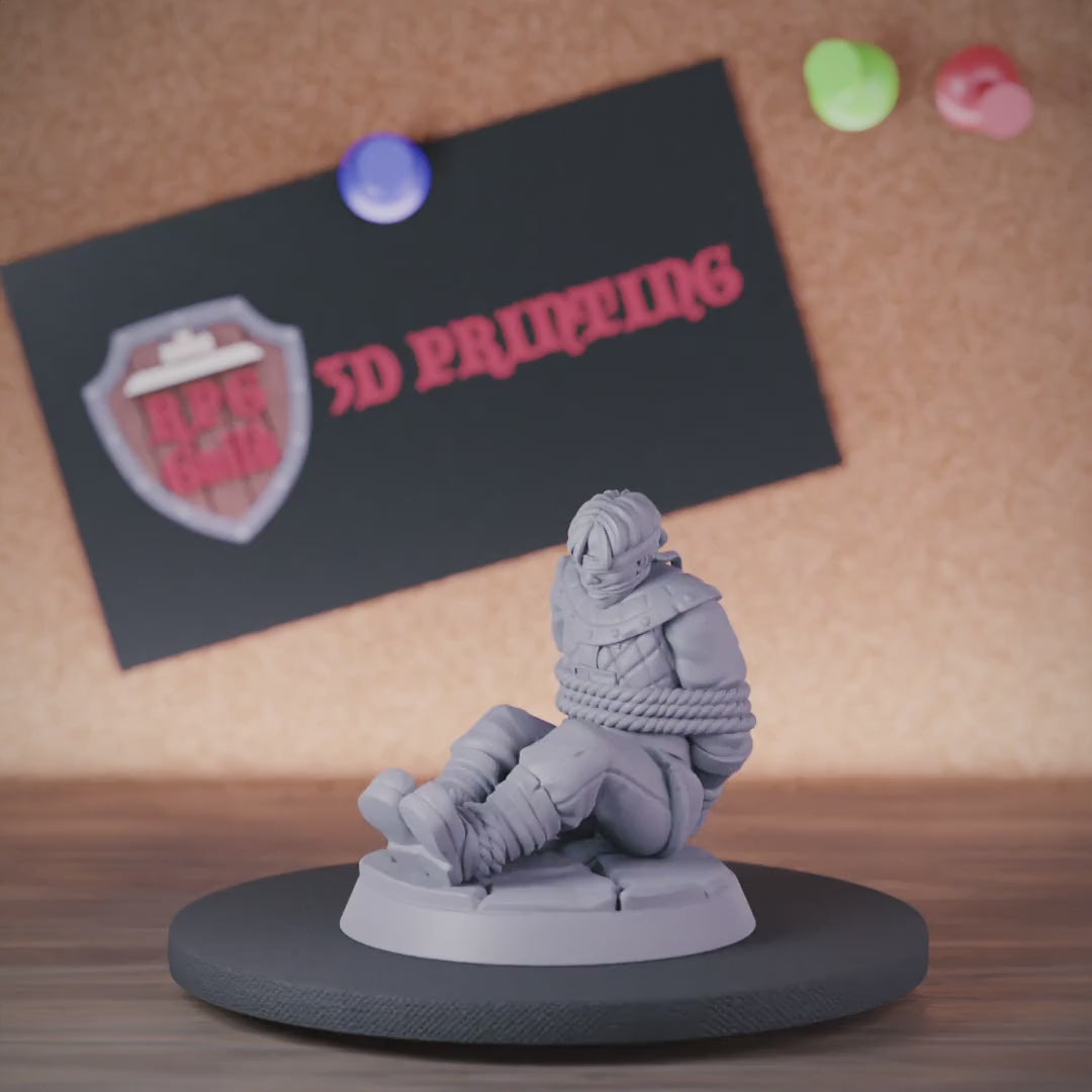 Dungeon Masters can use this mini to create thrilling rescue missions. Place him in a monster's lair or bandit hideout and watch your heroes hatch a daring plan. The blindfold and ropes will fire up their protective instincts! For players, rescuing an innocent prisoner builds a satisfying sense of heroism.